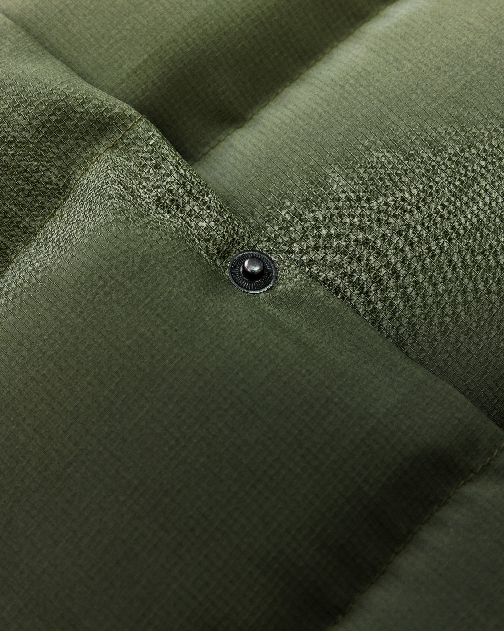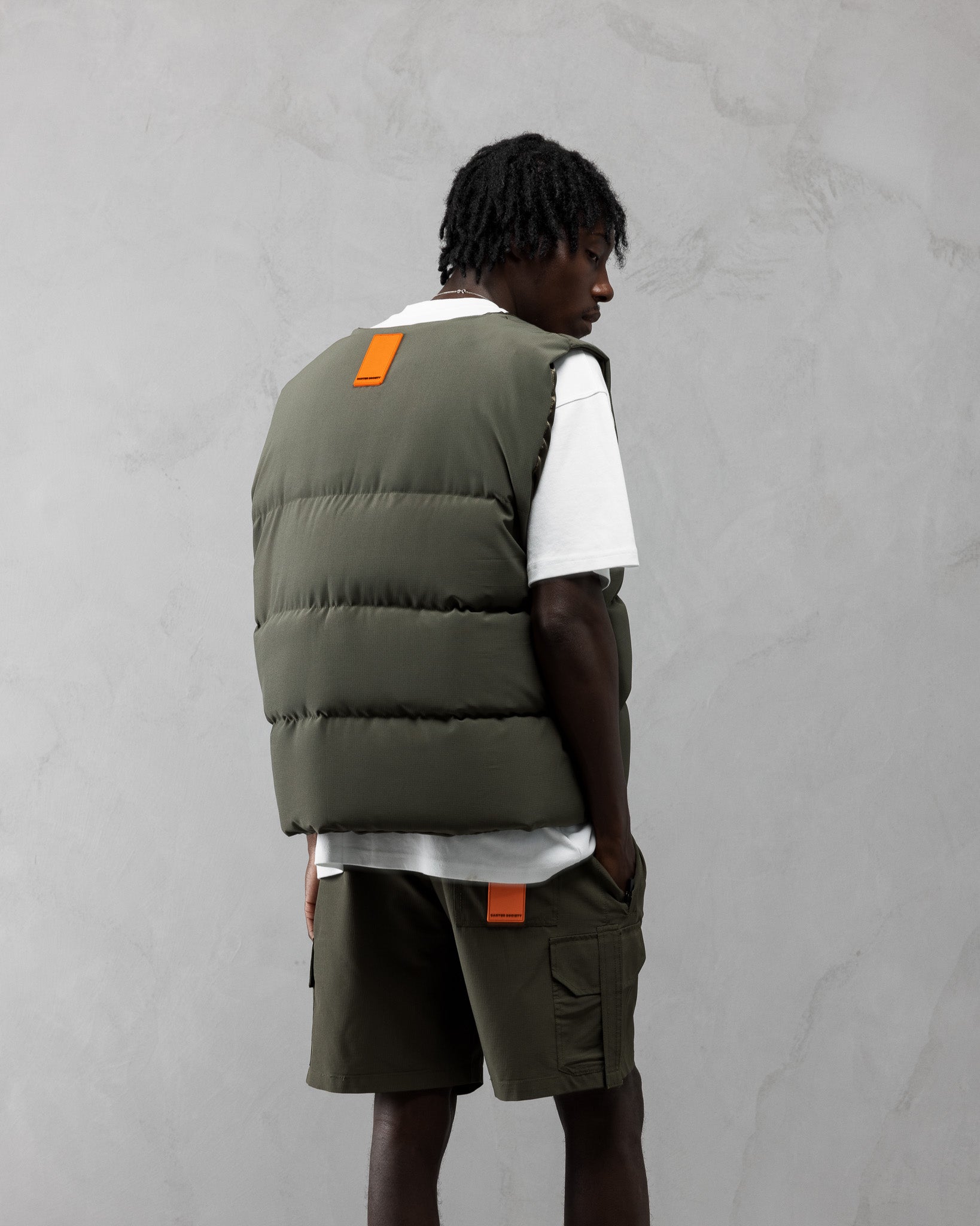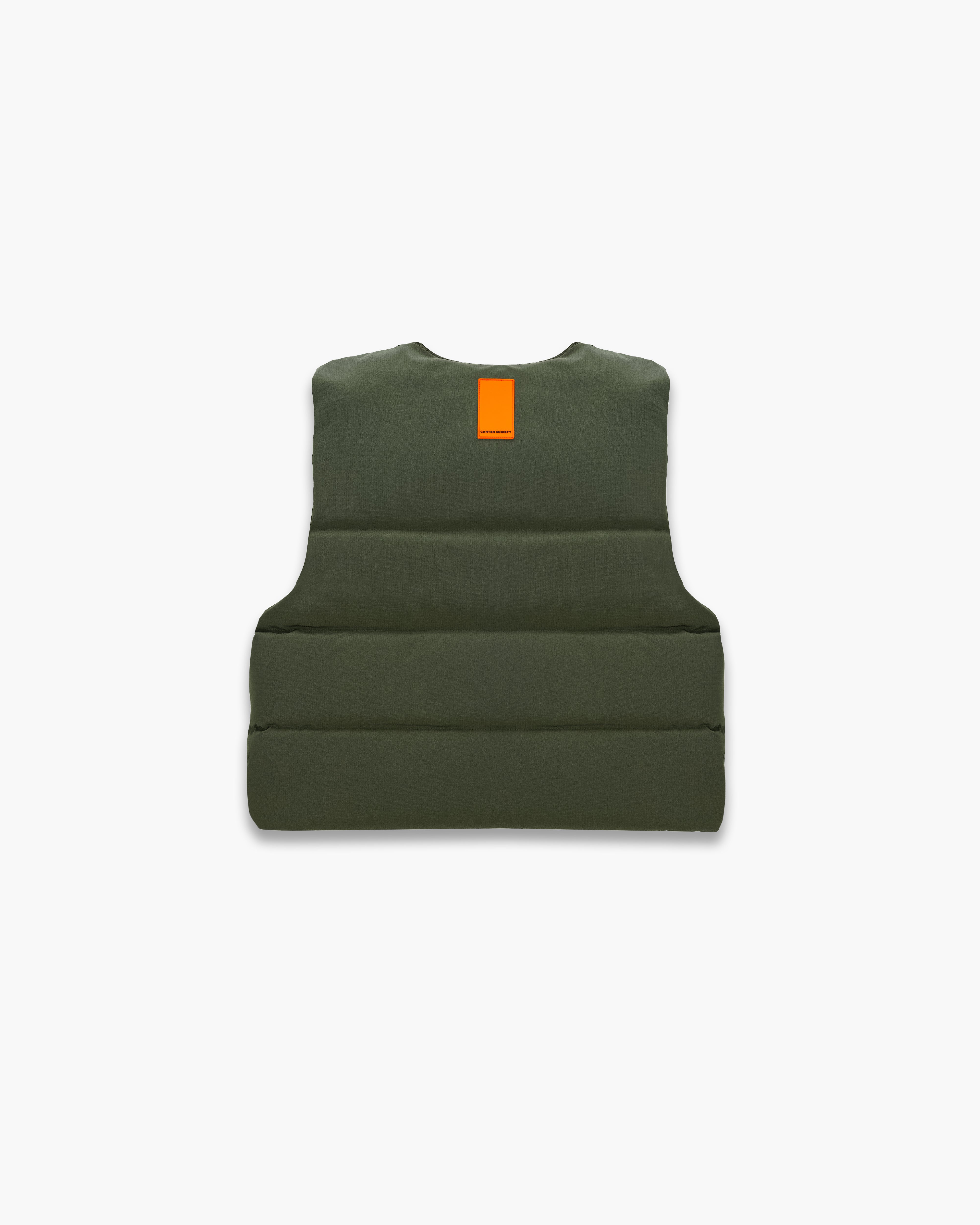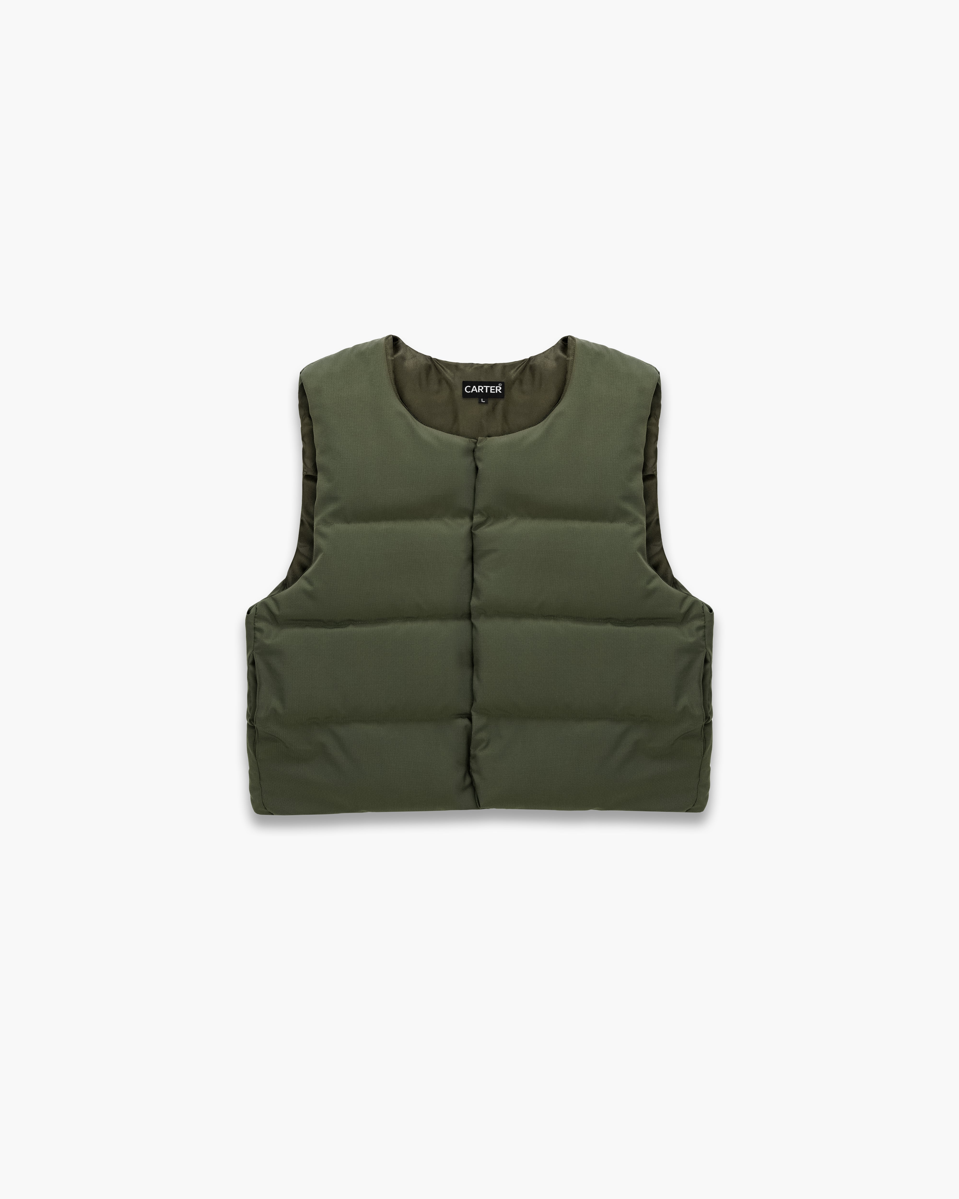 Expertly crafted with AJ Tech Fabric, this Khaki Puffer Vest offers the perfect combination of lightweight comfort and heavyweight style. Designed with an oversized cropped fit, it can be easily layered for any occasion. The buttoned finish and official orange Carter branding add the perfect touch of detail to this high-quality puffer vest.